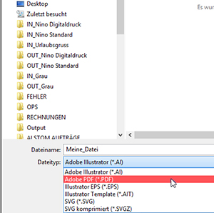 Beim speichern von PDF-Dateien sollten Sie den PDF/X3-Standard verwenden. AUßerdem empfehlen wir die PDF Version 1.3, um Probleme mit Ebenen und Transparenzen zu vermeiden.