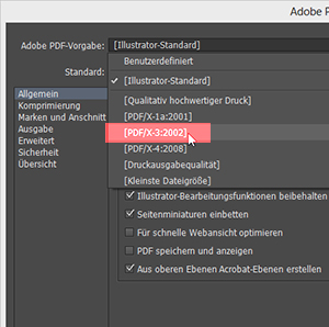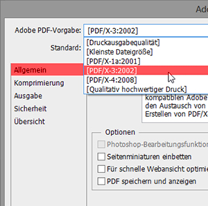 3. Als Adobe PDF-Vorgabe wählen Sie bitte PDF/X-3:2002.