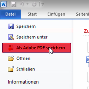 1. Klicken Sie unter dem Reiter Datei auf Als Adobe PDF speichern