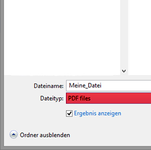 2. Wählen Sie den Speicherort, vergeben Sie einen eindeutigen Namen und wählen Sie als Dateityp PDF files.